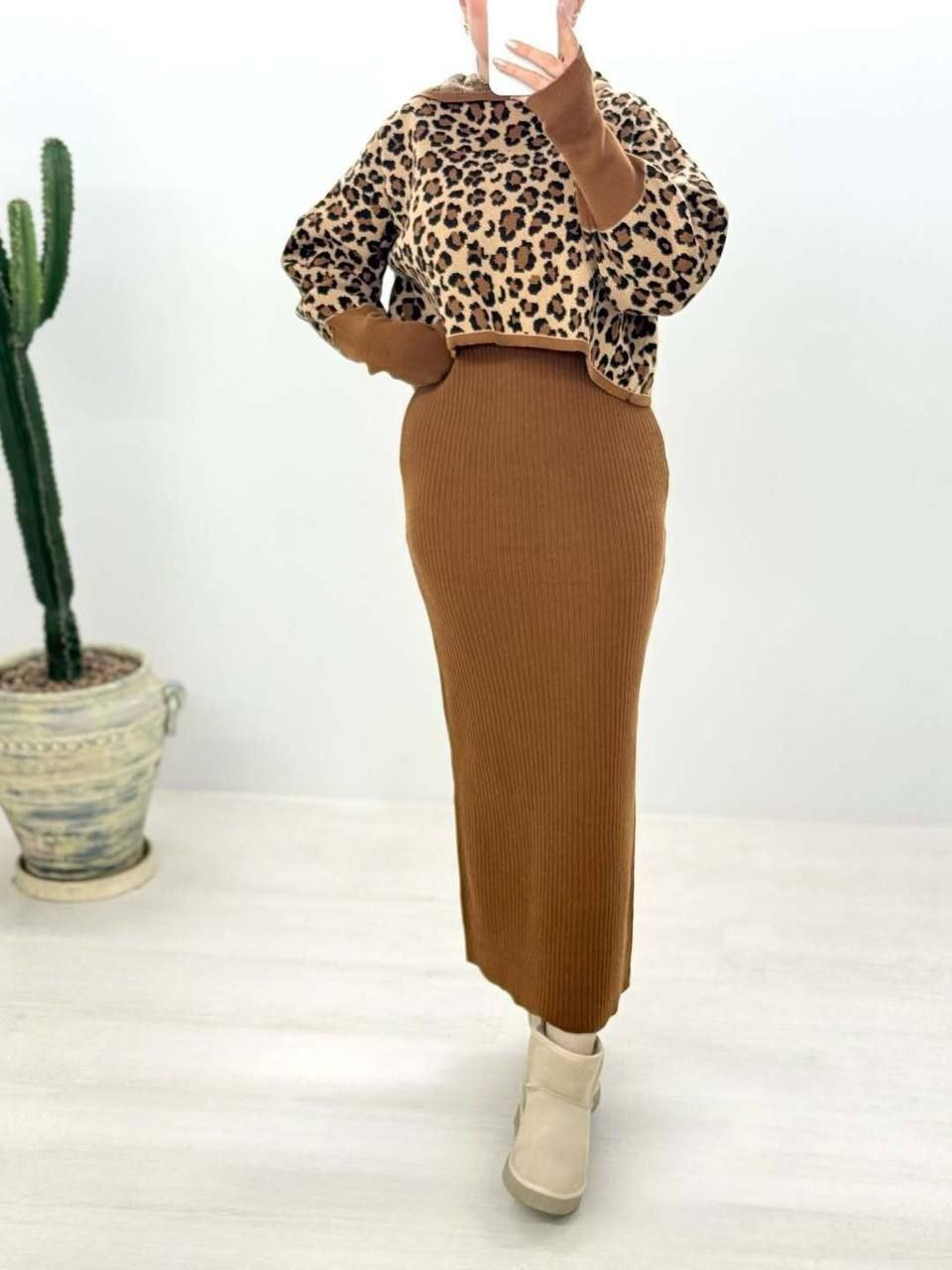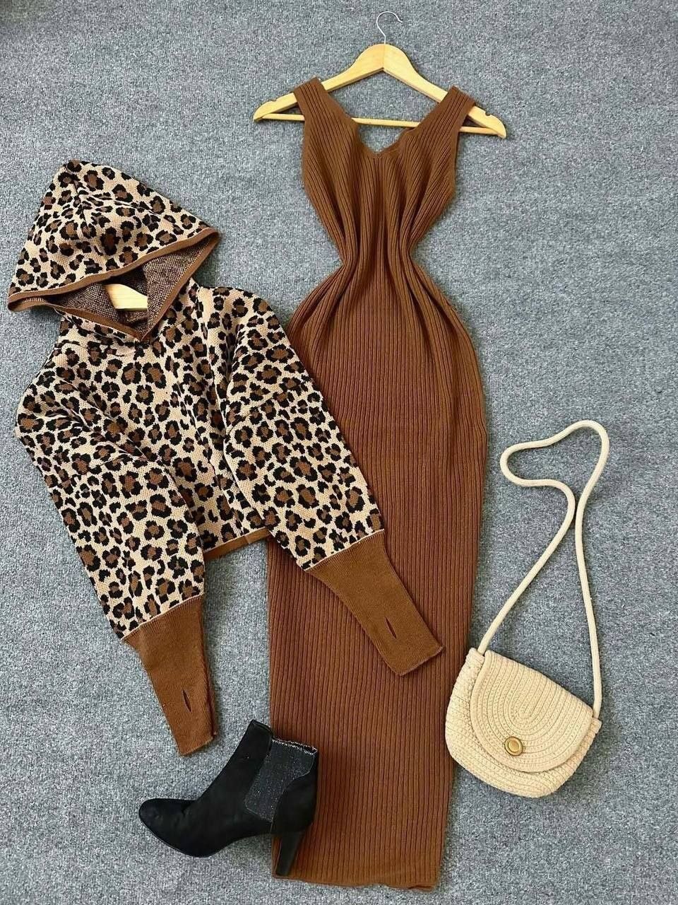 ⚜️ست سارافون و رویه پلنگی کلاهدار برند AX ⚜️رنگبندی:،قهوه ای،مشکی ⚜️سایز یندی:فیری سایز مناسب ۳۶ تا ۴۴ ⚜️قد سارافون :۱۳۵ سانت ⚜️قد رویه:۴۵ سانت ⚜️جنس :نخ بافت گرم بالا ⚜️قیمت:1084