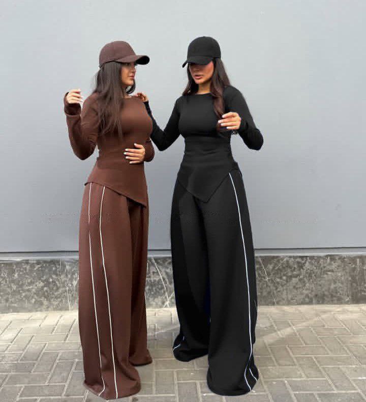 ست ۲تیکه بلوزشلوار زنانه بگ بغل خط دار فوق العاده ترند