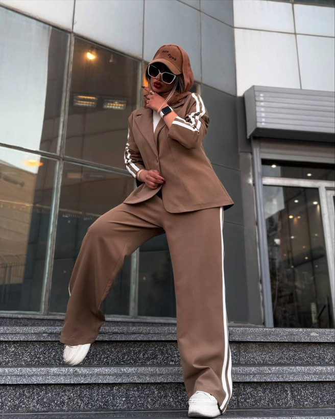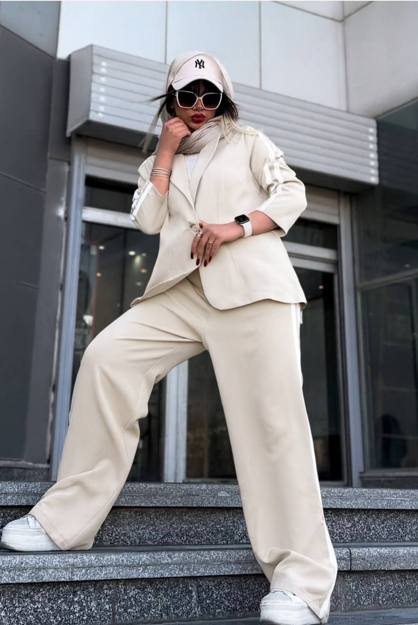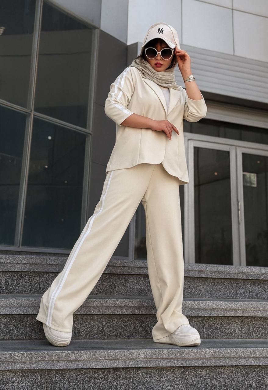 ✅نوار های کار شده روی کت و شلوار از جنس کتان میباشذ