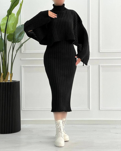 ست بافت زنانه خطی تک رنگ فیری سایز مناسب 36تا46