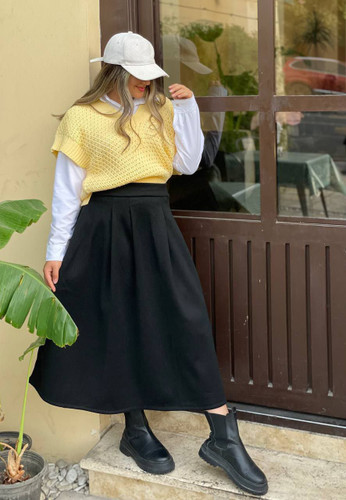 دامن پیله دار زنانه کمر پشت کش جنس روناک فری سایز4رنگ خوش ست