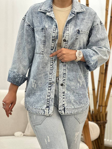 شومیز لش جین زنانه فری سایز جین اصل شسته شده و سنگشورشده