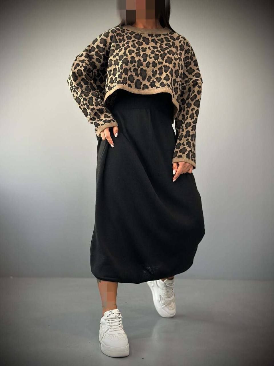 ست سارافن رویه پلنگی بافت زنانه و دخترانه ۲رنگ مشکی نسکافه ای