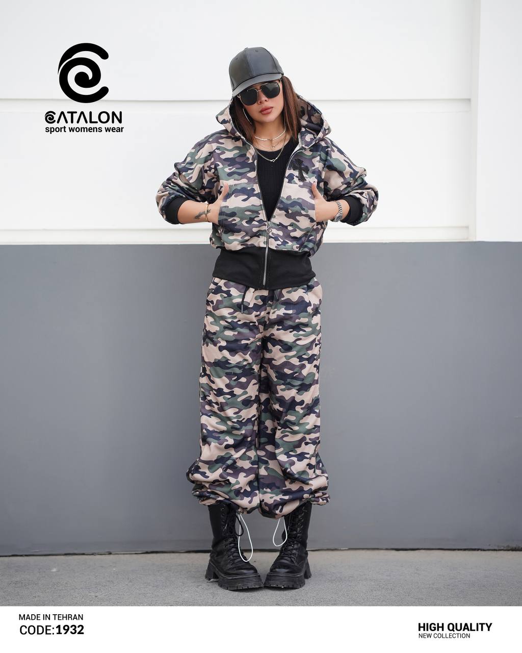 سوییشرت شلوار باکسی چریکی زنانه فری سایز مناسب 36تا44.46