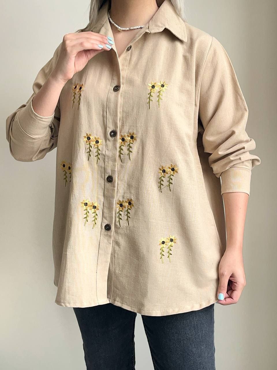شومیز لنین گلدوزی زنانه فری سایز مناسب 36تا44 بدون ابرفت