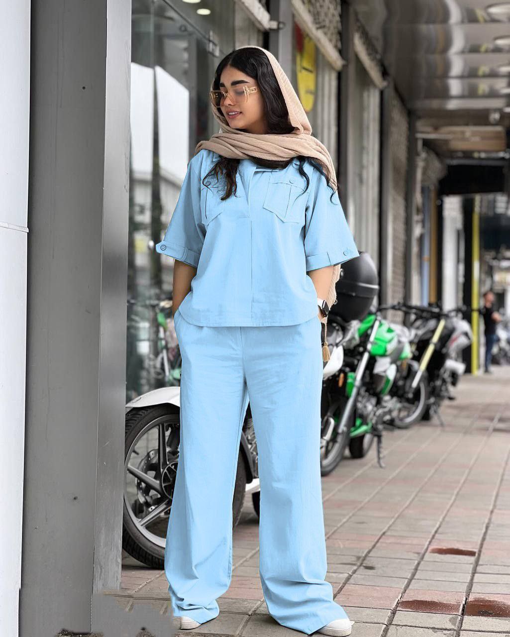 ست شومیز و شلوار بگ زنانه لنین بدون ابرفت فری سایز مناسب 36تا44