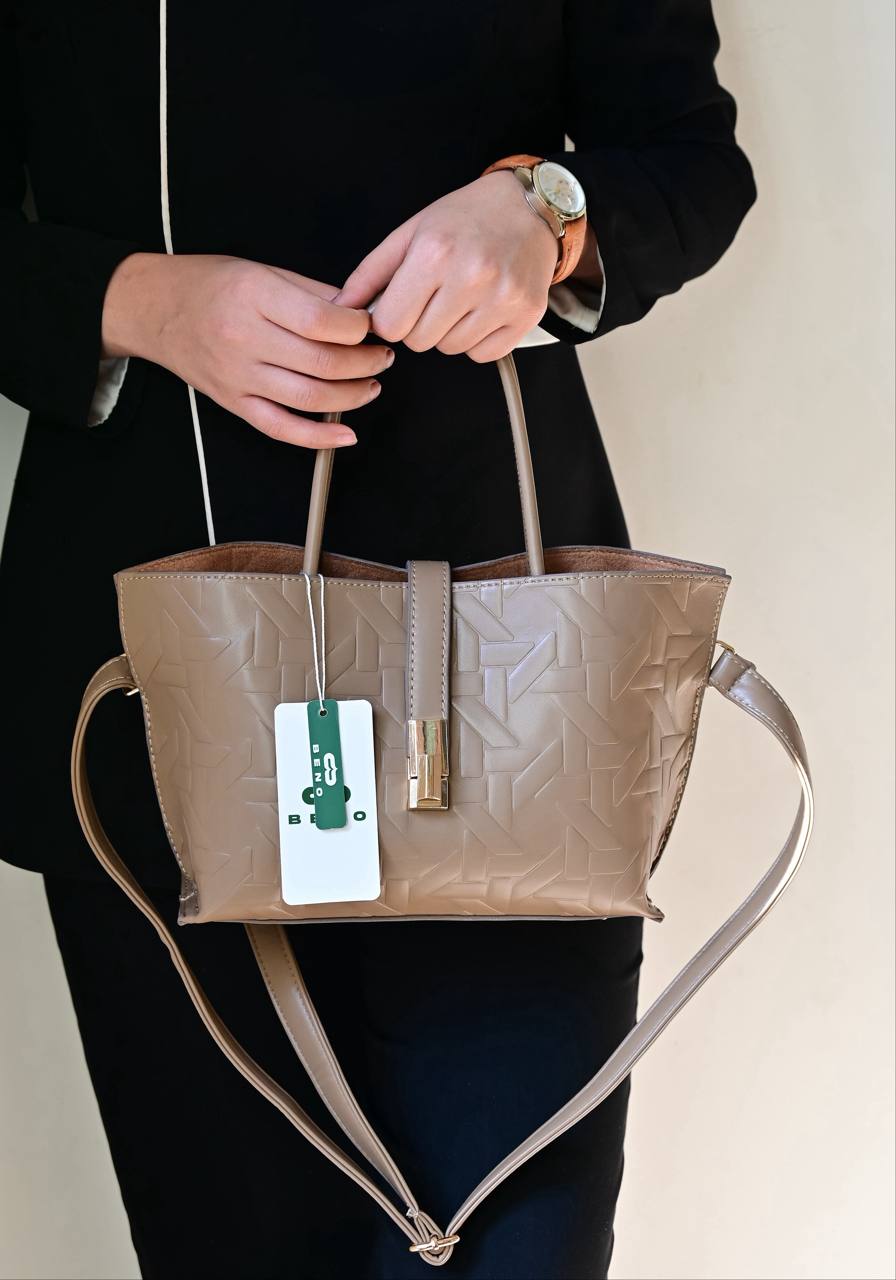 کیف زنانه چاپدار دستی همراه بندبلندقفل دار