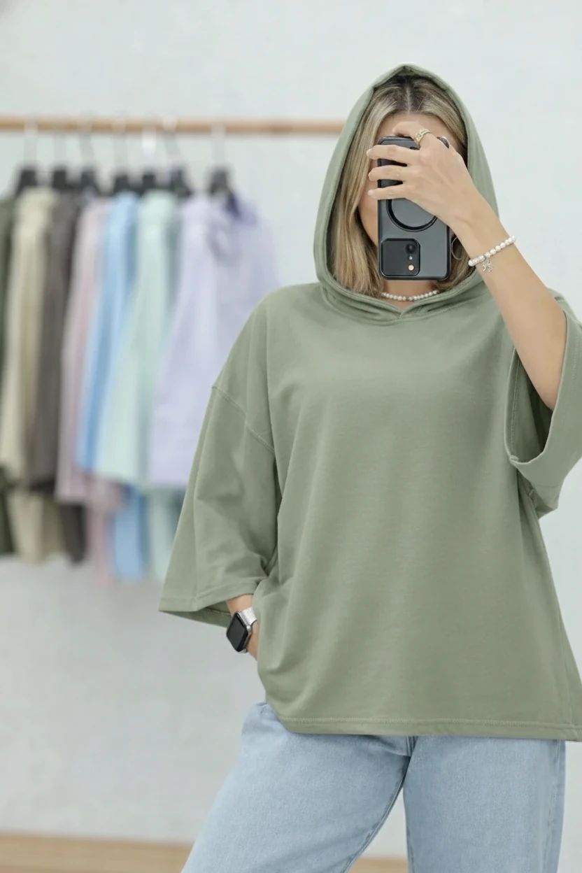تیشرت باکسی کلاهدار کاپلی (زنانه مردانه )