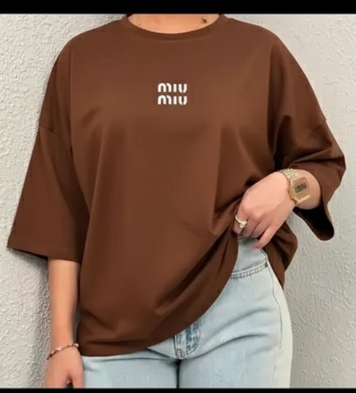 تیشرت باکسی زنانه miumiu نخی فری سایز مناسب سایز۳۶تا۴۴